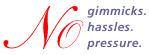 gimmicks, negotiation-free bottom-line pricing. Customer knows that the