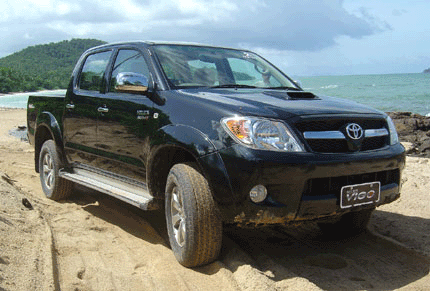 The top-of-the-line Hilux Vigo 3.0 G is our biggest seller and we are sending it to over 100 countries as diverse as South Africa, Zimbabwe, Namibia, Trinidad, Barbados, Suriname, and Pakistan. It comes with Vigo branding, air conditioning, power steering, alarm & immobiliser, high quality carpet mats, six-disc in dash CD autochanger with radio cassette, brushed metal scuff plates, and optional dark-tinted privacy glass for the rear windows. On the outside there are 16-inch alloy wheels, colour coded bumpers, front spotlamps, chrome mirrors, eye-catching chrome plated rear tubular bumper, optional dark-tinted privacy glass for the rear windows, rear mud guards, high line brake light, rear defroster, silver grey double coach-line and chrome "Vigo" badging.